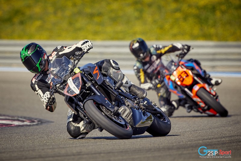 "C’est toujours sympa de remonter sur la Superduke. Même sur un circuit aussi rapide que le Castellet, ce gros roadster n’est pas ridicule face aux sportives du Protwin, notamment la version 2017. Plus puissante et mieux suspendue, elle m’a vraiment surpris dès les premiers tours de roue du vendredi. Je me qualifie d’ailleurs 14ème, à 3 secondes de la pole de McWilliams. En première course, j’ai profité d’un bon départ pour pointer à la cinquième position au premier passage sur la ligne. Puis remonter quatrième au fil de la course. Malheureusement, j’étais un peu à court de roulage avec cette machine qui demande des qualités de pilotage qui ne sont pas vraiment les miennes, notamment de la vitesse de passage en virage. Il fallait vraiment que je me force à lâcher les freins et au fil de la course j’ai repris mes mauvaises habitudes. Je me suis donc fait remonter et doubler dans la ligne droite d’arrivée pour finir cinquième. En seconde manche, je pars pas trop mal et pointe 4ème dans le premier virage. Malheureusement je me loupe à l’entrée du Beausset et perd trois places. Malgré tout mon rythme était meilleur que les jours précédents et j’ai pu remonter troisième à 3 tours de l’arrivée. Puis la fatigue s’est faite sentir et je termine finalement 4ème. Au final je suis satisfait, notamment car les effort de Hervé Ricord ont payé : il place ses deux pilotes aux deux premières places de la KTM Super Duke Cup 2017. Ses conseils en terme de réglage de suspensions et amélioration du freinage ont porté leurs fruits et rendu la moto encore meilleure. Elle se rapproche un peu plus des performances des sportives de tête, avec notamment un 300 km/h compteur en course, grâce à l’aspiration d’un concurrent. Avec des chronos pour Michael et moi à 0,5 secondes de Jeremy McWilliams, on peut dire que ses choix ont été les bons !"